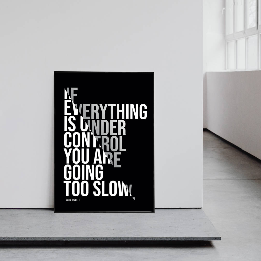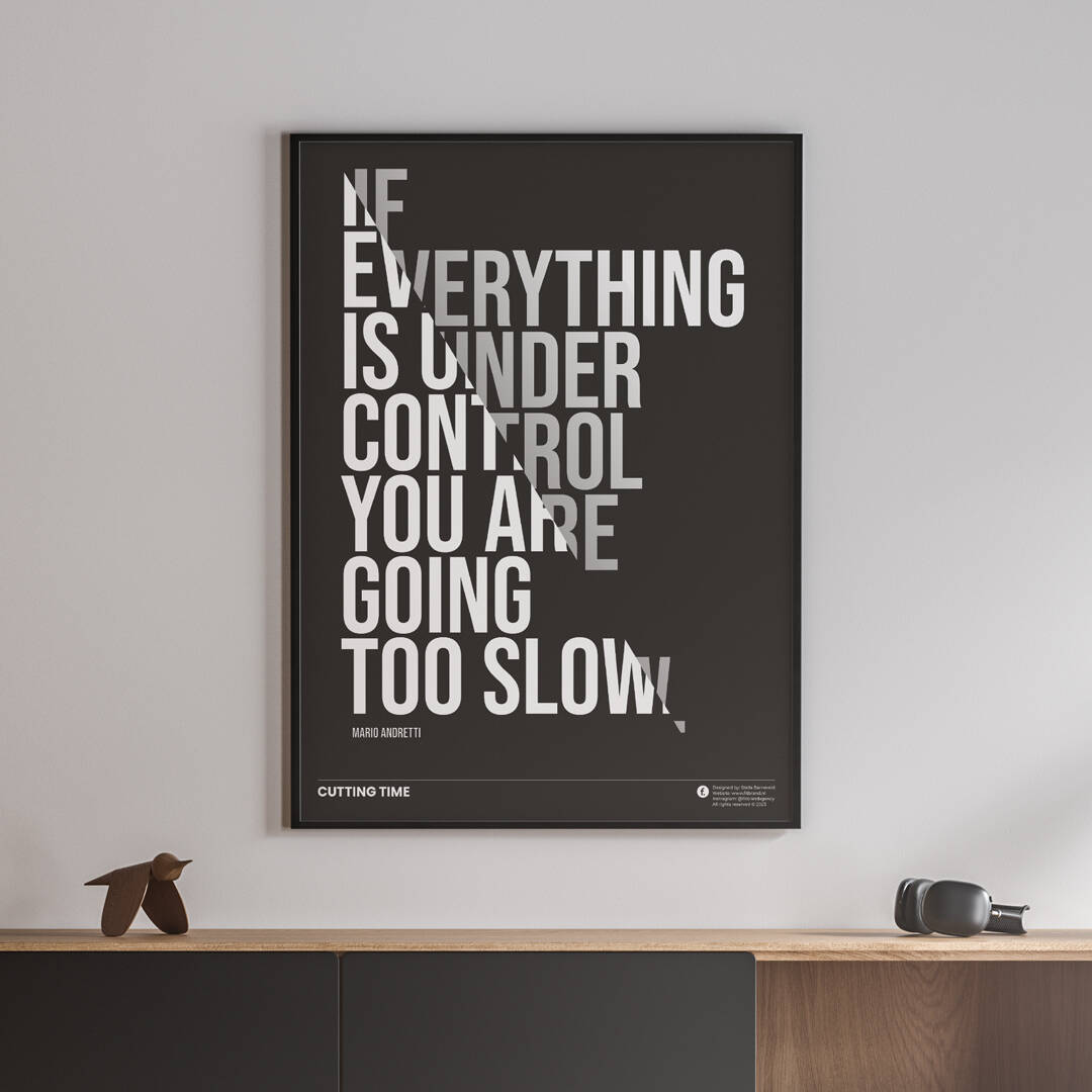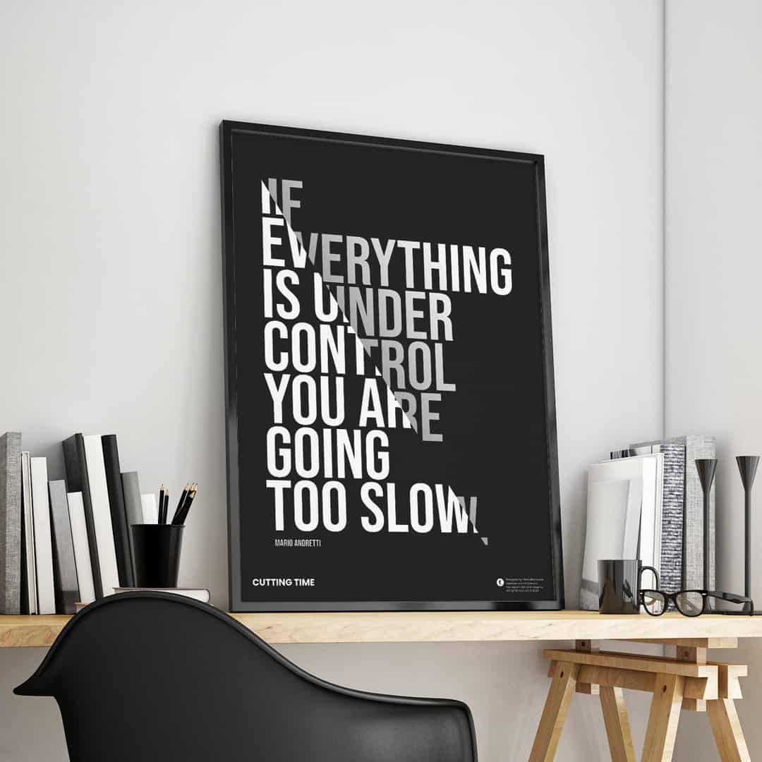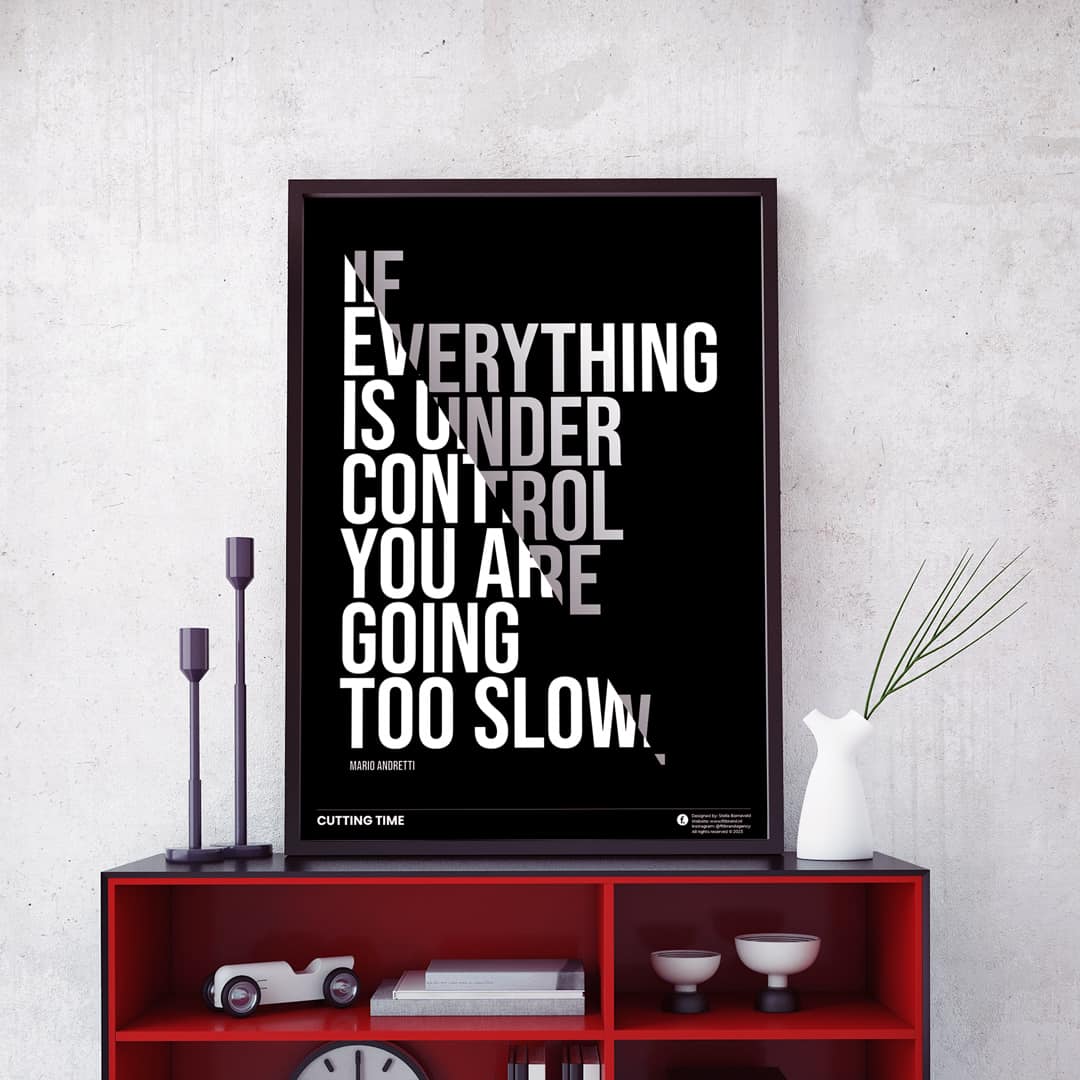 Grafisch ontwerper Stella Barneveld heeft op geheel eigen wijze vormgegeven aan de Mario Andretti poster “If everything seems under control, you’re not going fast enough.”