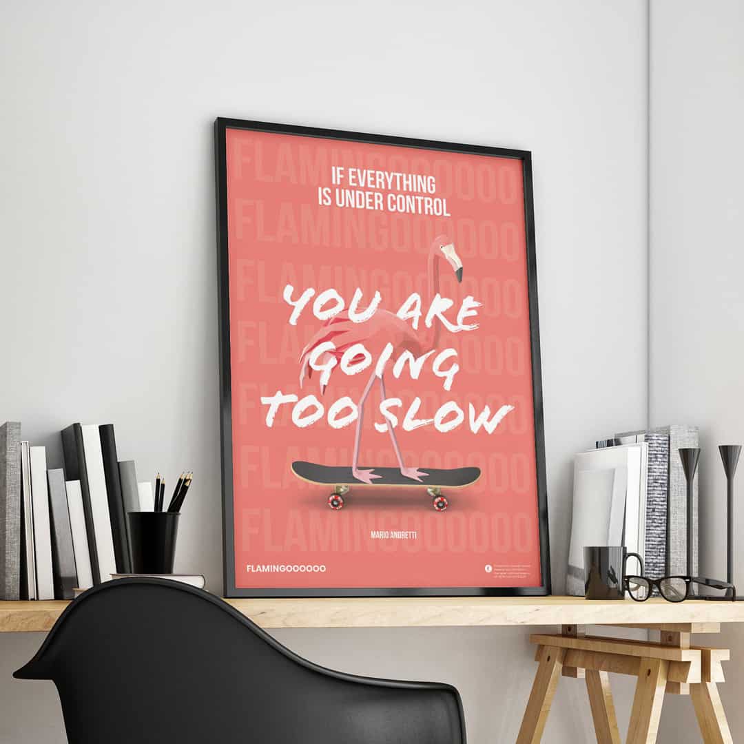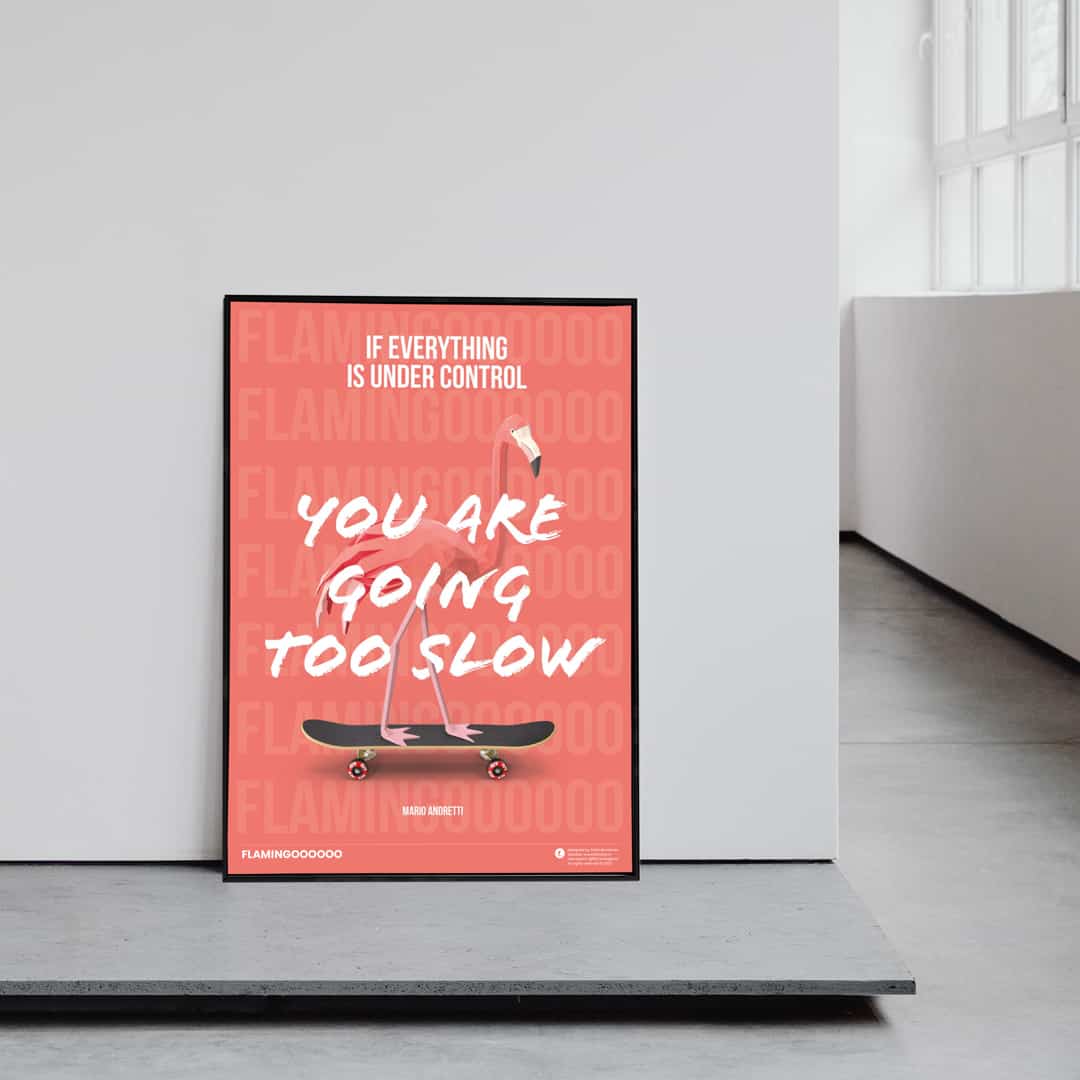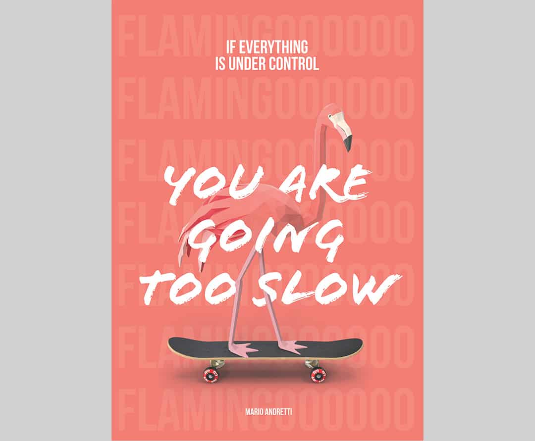 Graphic designer Melinde Meinen bites herself on the theme “If everything seems under control, you’re not going fast enough.” This is the most famous quote by Mario Andretti. He was the most successful American motorcycle racer. He won the 1978 World Championships, the Formula One race and four IndyCar titles.