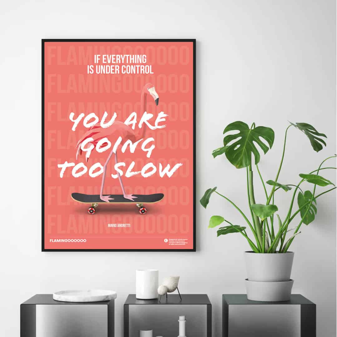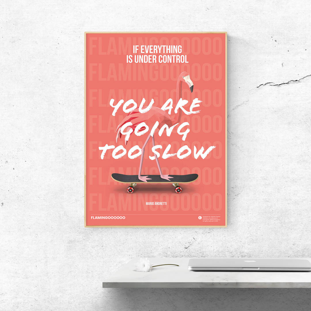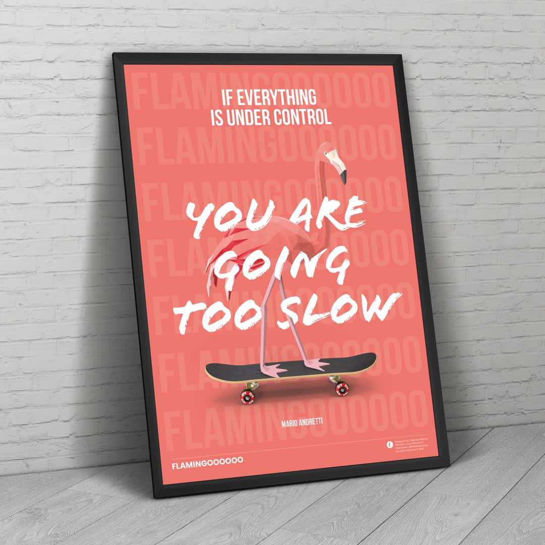 Graphic designer Melinde Meinen bites herself on the theme “If everything seems under control, you’re not going fast enough.” This is the most famous quote by Mario Andretti. He was the most successful American motorcycle racer. He won the 1978 World Championships, the Formula One race and four IndyCar titles.