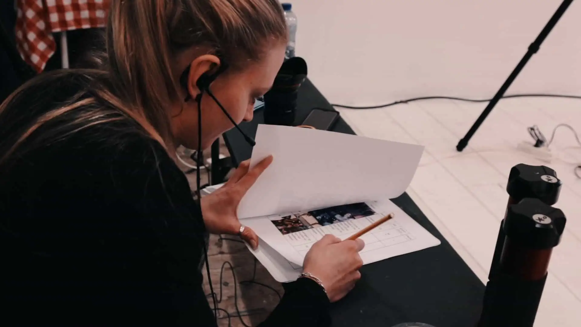 Zo kunnen er bijvoorbeeld detailshots worden gemaakt, van kleding of apparatuur, of worden er bepaalde mensen uitgelicht die van belang zijn voor het beeld. Aansluitend wordt er gewerkt met een shotlist, een document waarin camerastandpunten zijn opgenomen, welk soort licht er nodig is, en welke lens er wordt gebruikt. Hierin wordt ook de cameravoering beschreven, zoals bijvoorbeeld een close-up, een extra long shot of een craneshot.